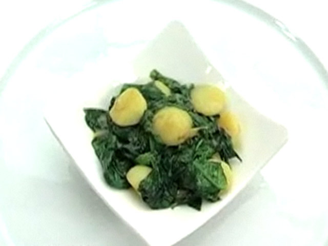 Рецепт вкусного блюда из картофеля.Состав:картофель — 1 штука;шпинат — 90 гр;овощной бульон — 2 стакана;чеснок — 3 зубчика;оливковое масло, чили.