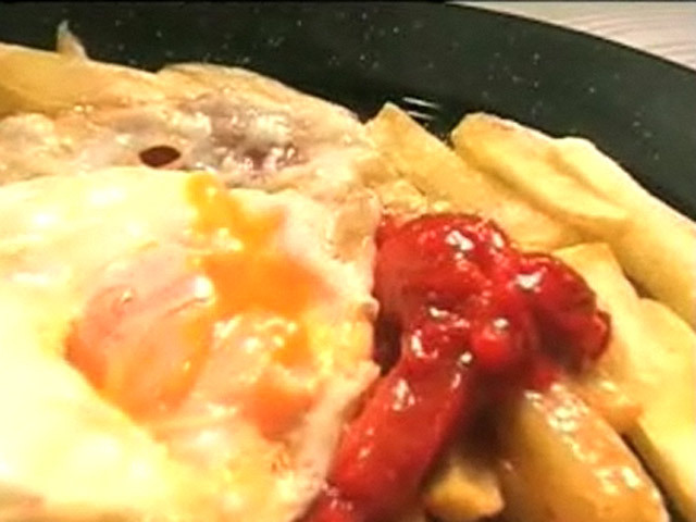 Рецепт чипсов, запеченных с яйцом.Состав:яйцо — 1 штука;перец — 1 штука;черри — 6 штук;чеснок, картофель, соль, масло.
