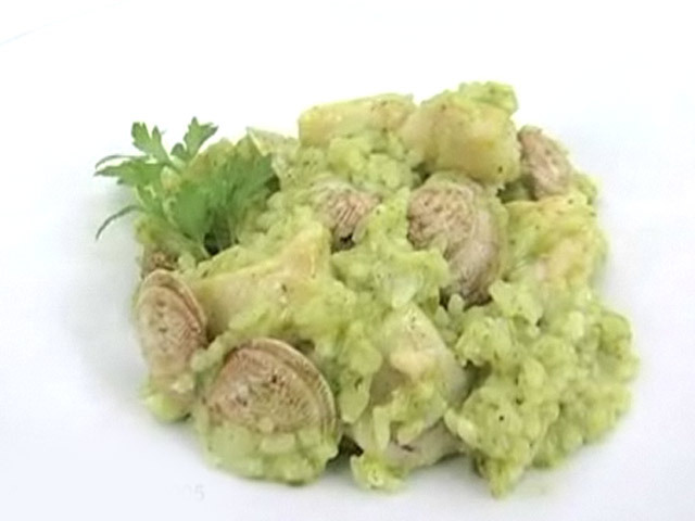 Рецепт вкусного ризотто из рыбы и зелени.Состав:рыба-монах — 200 гр;рыбный бульон — 400 гр;моллюски — 200 гр;рис — 200 гр;чеснок — 1 зубчик;пармезан — 15 гр;сливки — 30 гр;лук — 30 гр;петрушка — 15 гр;зеленый перец — 100 гр;соль, масло. Язык: Русский
