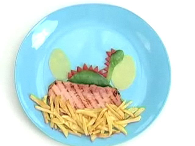 Описание материала:Красиво оформленное блюдо улучшает аппетит.Состав:свинное филе — 1 кусок;картофель — 4 штуки;сыр — 2 кусочка;укроп — 1 веточка;перец — 1 штука;соль, подсолнечное масло.