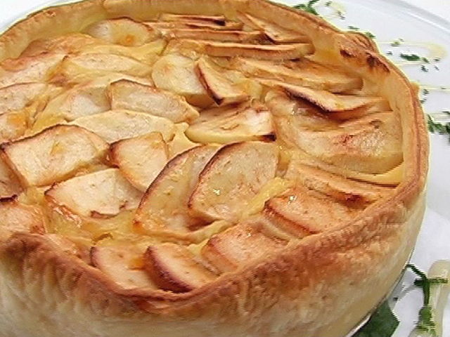 Очень нежный и пышный яблочный пирог.Состав:яйца — 5 штук;яблоки — 6 штук;молоко — 4 стакана;абрикосовый джем — 100 гр;сахар — 200 гр;крахмал — 2 столовых ложки;лимон — 1 долька;корица — 1 чайная ложка;сдобное тесто — 1 корж. Язык: Русский