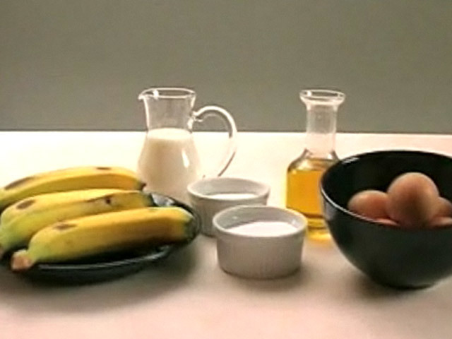 Рецепт бананового десерта.Состав:бананы — 4 штуки;молоко — 1 стакан;яйца — 4 штуки;сахар, масло, соль.