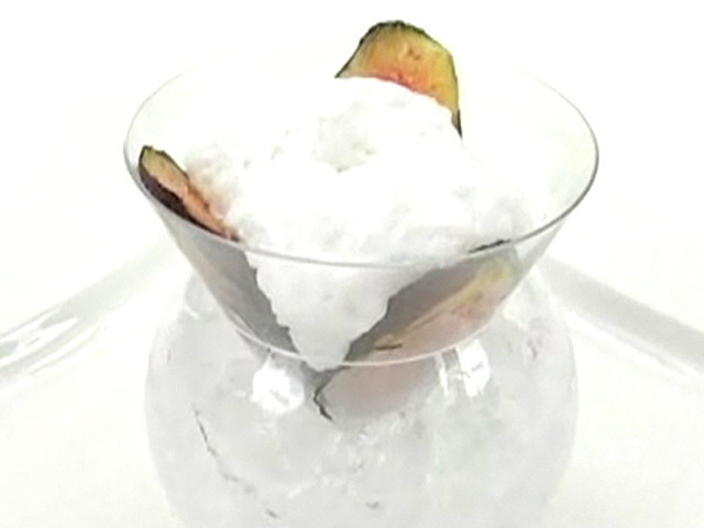 Рецепт воздушной пены из кокосового молока.Состав:кокосовое молоко — 400 гр;сахар — 30 гр;фига — 1 штука;желатин — 2 листа.