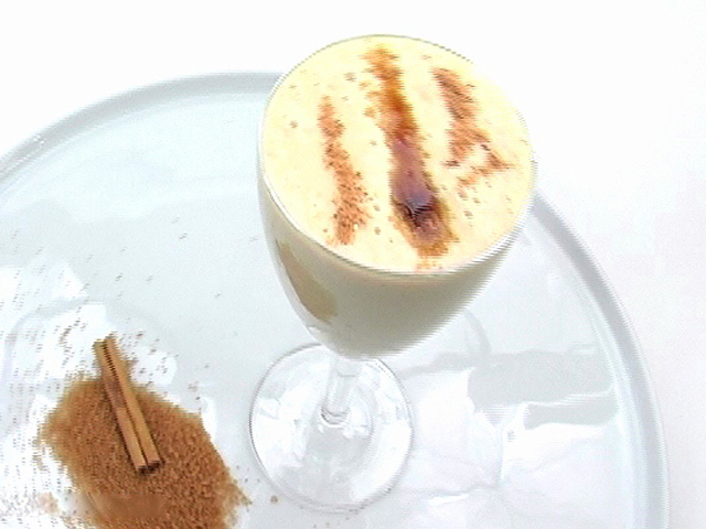 Легкий и сладкий завтрак для каждого.Состав:мускатный орех — 1 щепотка;бананы — 2 штуки;мед — 1 столовая ложка;апельсиновый сок — 1стакан;йогурт — 1 порция;немного миндаля и тросникового сахара. Язык: Русский