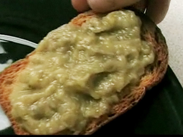 Вкусная паста из баклажана.Состав:баклажаны — 2 штуки;тосты — 8 кусочков;чеснок — 5 зубчиков;масло, соль, петрушка.
