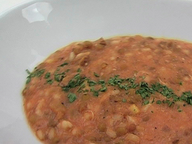 Марокканский суп. Очень вкусно!Состав:ягненок — 150 гр;вода — 600 гр;рис — 50 гр;томат — 150 гр;лук — 1 штука;имбирь — 30 грм петрушка — 1 пучок;чечевица — 80 гр;сельдерей — 30 гр;корица — 1 чайная ложка;паприка — 1 чайная ложка;тмин — 1 чайная ложка;оливковое масло, соль, перец — по вкусу. Язык: Русский