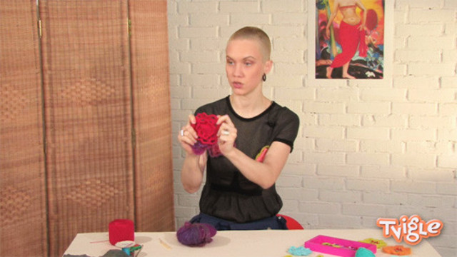 Наташа Ленци объясняет, как связать цветок при помощи крючка.